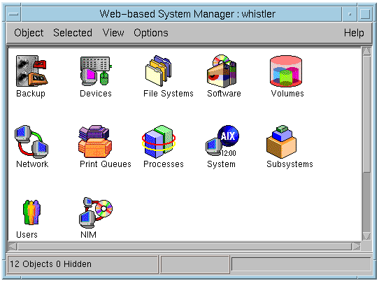 Web-based System Manager - это графический интерфейс управления системой. Базирующийся на объектно-ориентированной модели этот инструмент позволяет администрировать систему AIX способом манипулирования графическими объектами. Web-based System Manager использует Java и платформо-независим и может быть запущен в любом броузере поддерживающем Java 1.1.2 или выше.
